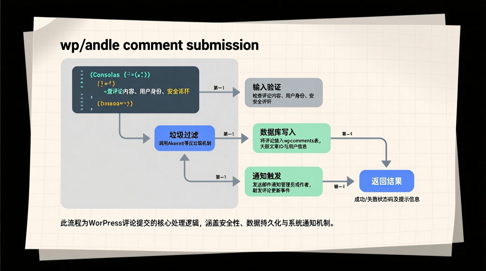- 检查是否为垃圾评论(通过 Akismet 或其他过滤器)