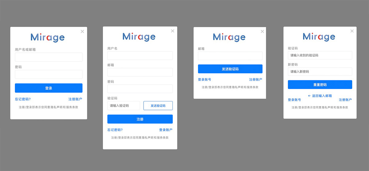 登录、注册和重置密码