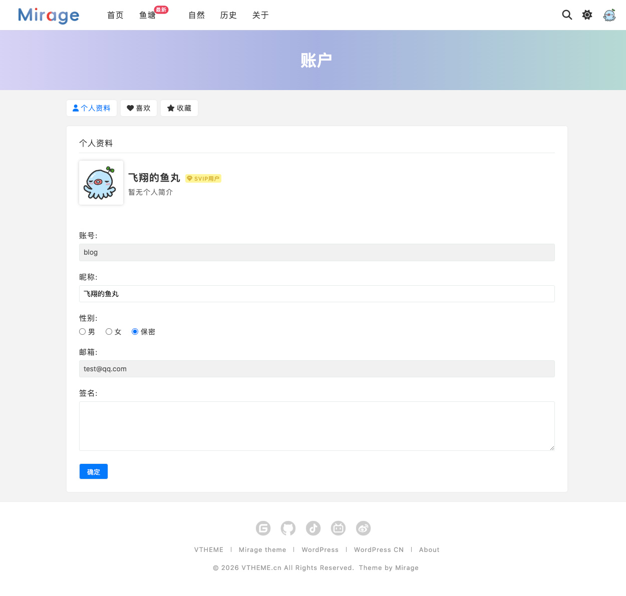 Github下载地址:https://github.com/vthemecn/mirage/releases/tag/v3.6.0