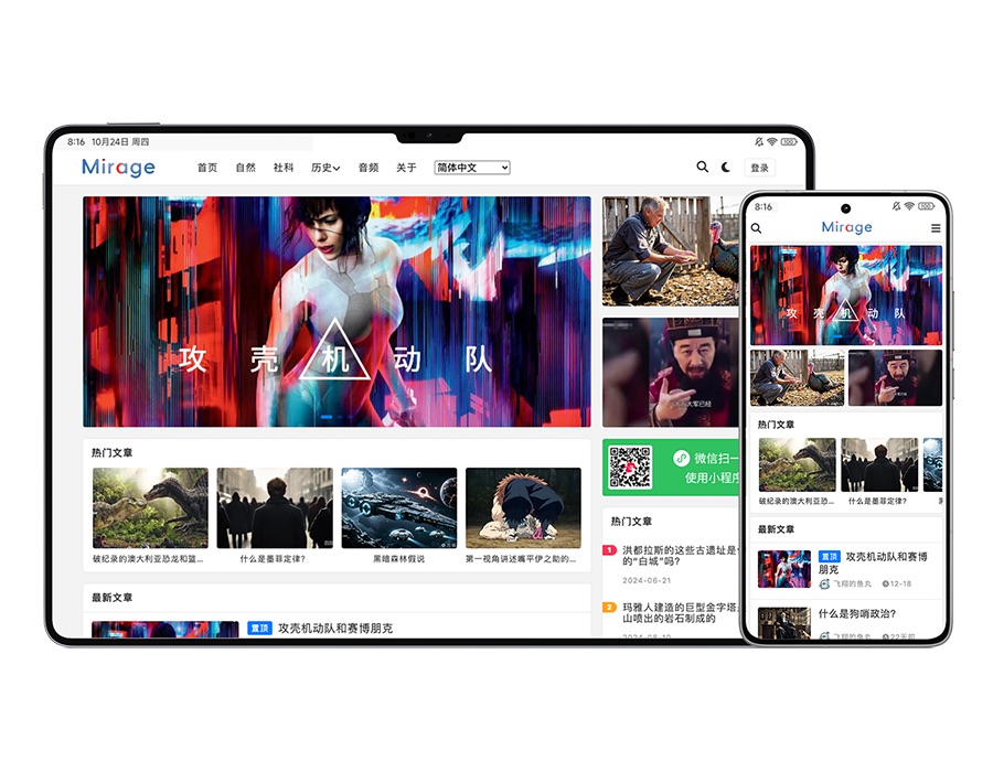 Mirage 是一款开源的 WordPress 主题,支持自适应、暗黑模式等功能,可快速构建高质量的网站。